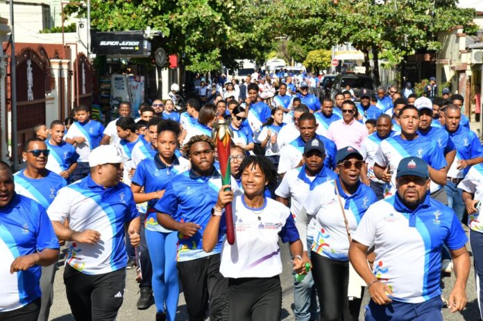 La alcaldesa de La Vega, la profesora Amparo Custodio, participó activamente en el recorrido de la antorcha de los undécimos Juegos Escolares Deportivos Nacionales San Francisco 2025.