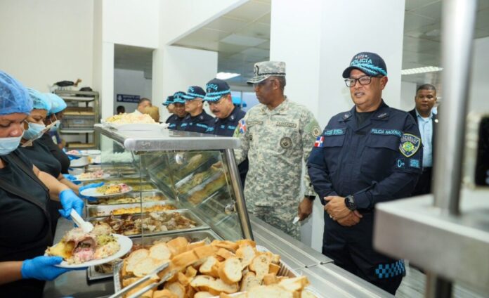 El director general de la Policía Nacional, Ramón Antonio Guzmán Peralta, y el vicealmirante Juan Bienvenido Crisóstomo Martínez, comandante general de la Armada, encabezaron la tradicional cena de Nochebuena con agentes policiales en el comedor de la sede policial.