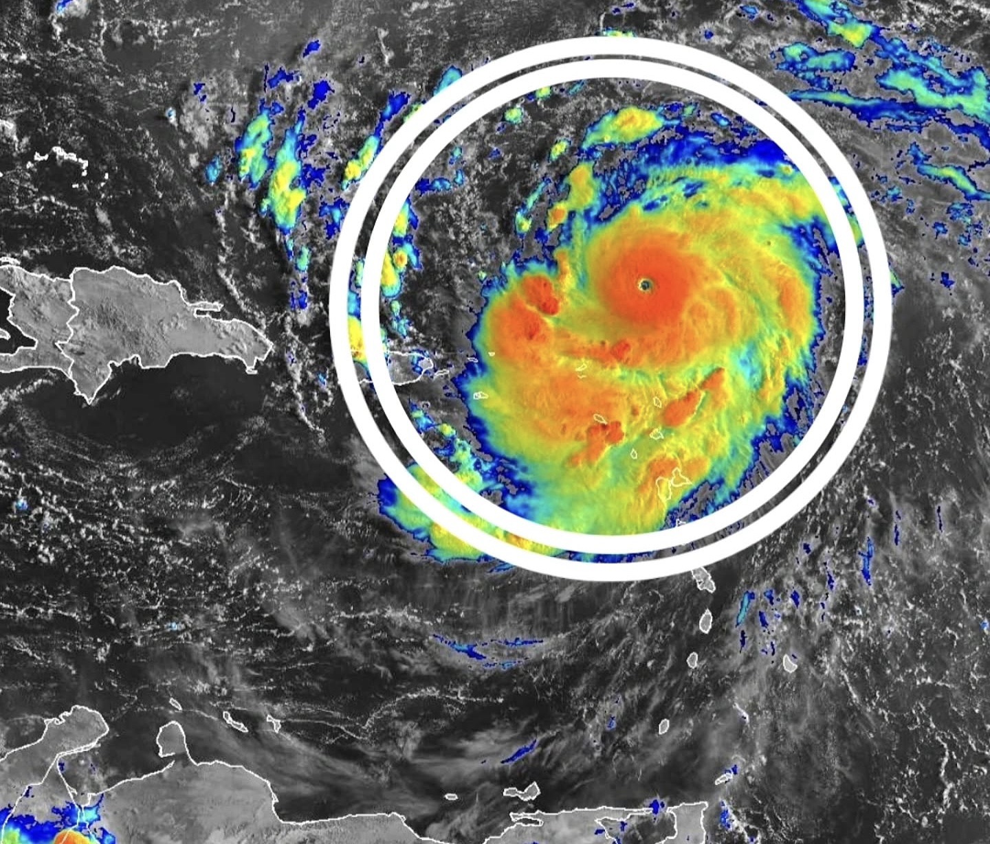 Lleva una trayectoria hacia el oeste-noroeste a 31 km/h: su ojo se ubica a 695 kilómetros al este-noreste de Punta Cana, en el Atlántico; la mayor nubosidad del huracán se encuentra al sur y suroeste de su centro.